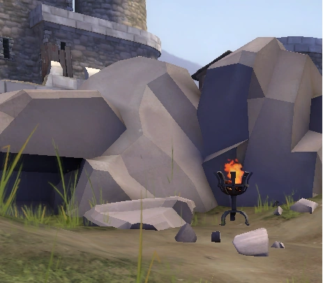 Zwischen den beiden Lagern liegt eine leichte Anhöhe, auf der sich mehrere Kohlepfannen und Felsen befinden. Sniper können ihre Huntsman-Pfeile mithilfe dieser Pannen entzünden und hinter den Felsen in Deckung gehen. Eine Stelle der Felsen hat eine ansteigende Form, die einer Rampe ähnelt. Diese können Demoman, die einen Sturmschild oder die Stattliche Schutzwand verwenden, im Ansturmmodus als Rampe verwenden. Nutzt ein Demoman diese, kann er sich durch die Beschleunigung in die Burg befördern. Wie hinter den Felsen der Angreifer haben auch die Verteidiger auf den Mauern Kohlepfannen und können sich hinter den Zinnen der Mauern und Schießscharten verstecken.