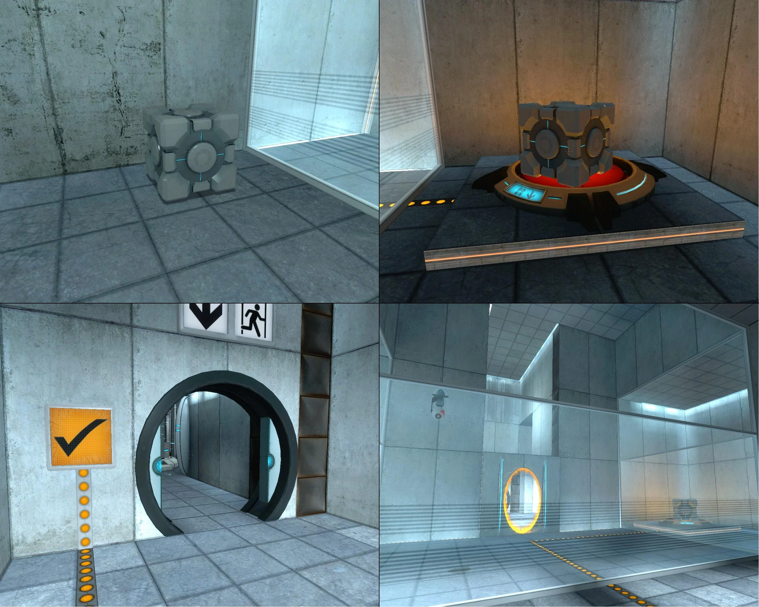 In Testkammer 01 wird erneut die Kubus-Knopf Wechselwirkung praktiziert. Es gibt fünf Räume, die mittels Portalen abwechselnd begehbar sind.