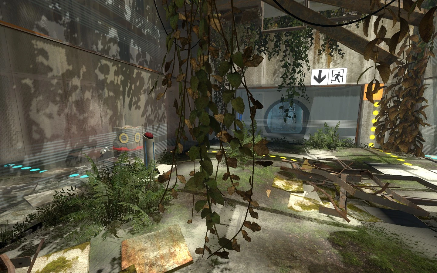 In dem vierten Raum, dass auch nur, mit dem entsprechendem Portal begangen werden kann, befindert sich die Tür, die zur Kammerschleuse führt, die einen ins nächste Level bringt.