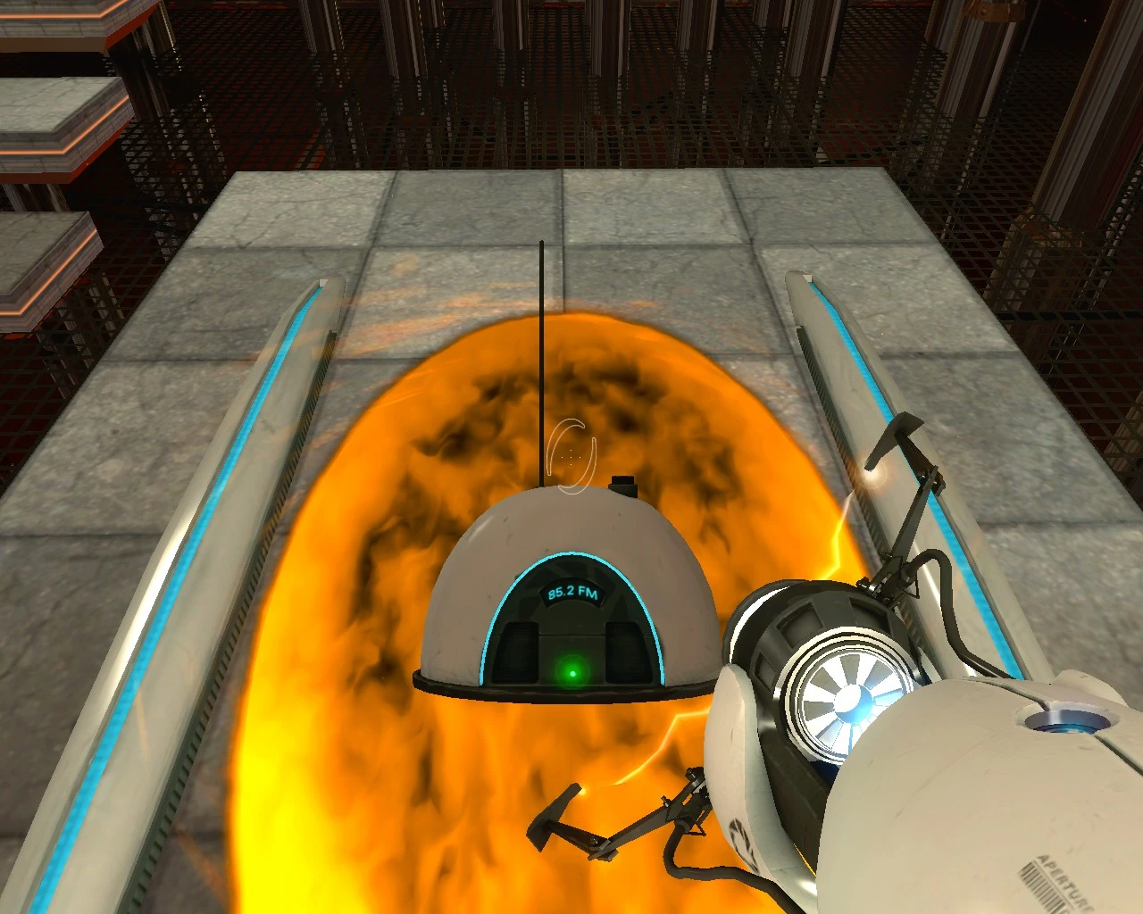 Die richtige Frequenz erreicht man indem man das Radio in die Grube zum orangen Portal bringt.